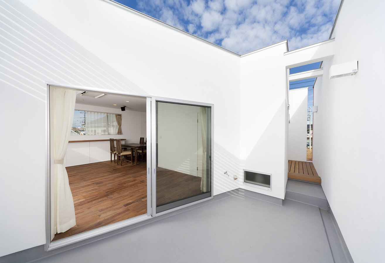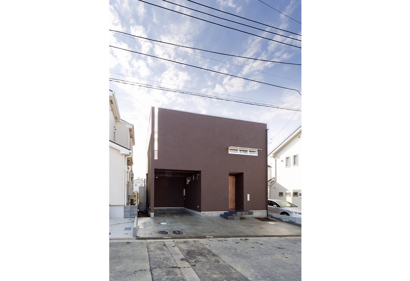プライバシーを確保したシンプルモダンな家。