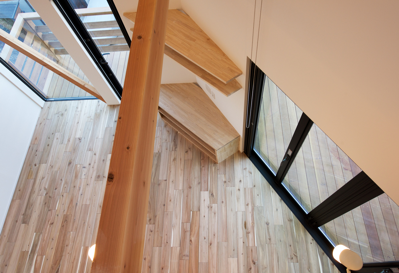 高台に建つ自然素材を使ったモダンな家