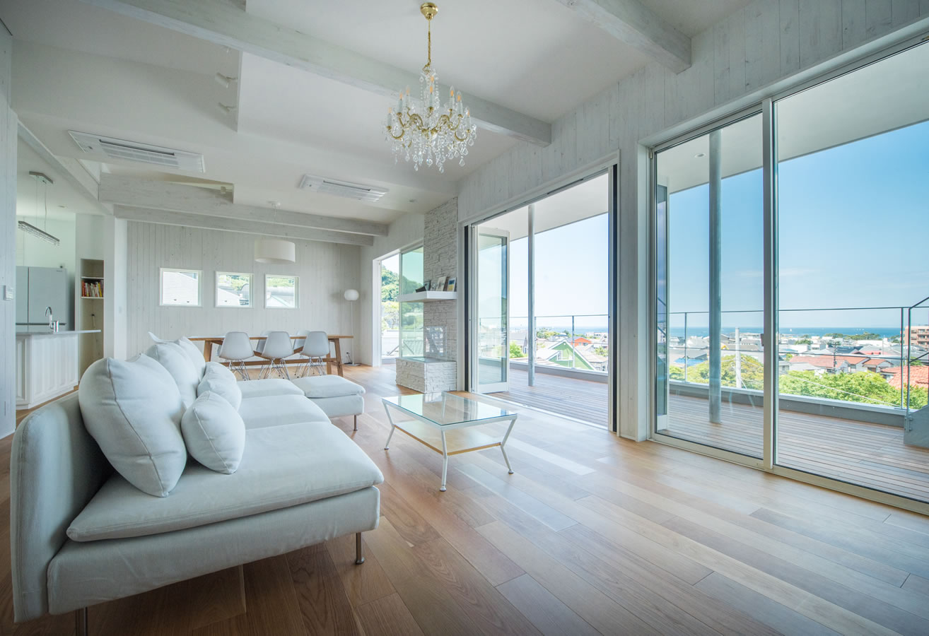 江の島を望む高台の家は、住む人のこだわりが満載。